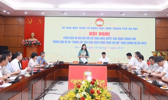 Ủy ban Mặt trận Tổ quốc Việt Nam thành phố Hà Nội vừa tổ chức Hội nghị phản biện xã hội đối với dự thảo Nghị quyết của Hội đồng Nhân dân (HĐND) Thành phố về Đề án “Thành lập sàn giao dịch công nghệ Hà Nội”. Hội nghị thu hút sự tham gia của nhiều chuyên gia, nhà khoa học, đánh giá cao sự cần thiết của đề án này trong việc thúc đẩy phát triển thị trường khoa học và công nghệ (KHCN) tại Hà Nội.