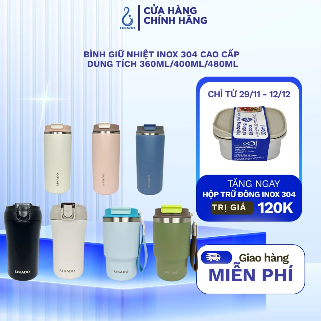 🔥 Bình giữ nhiệt Likado inox 304 cao cấp giữ nhiệt lâu dung tích 360ml/400ml/480ml đang giảm giá!