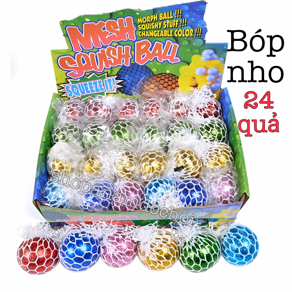 🔥 Hộp 24 quả trứng lưới bóp nho stress , squishy ball quả bóp kim tuyến đang giảm giá!