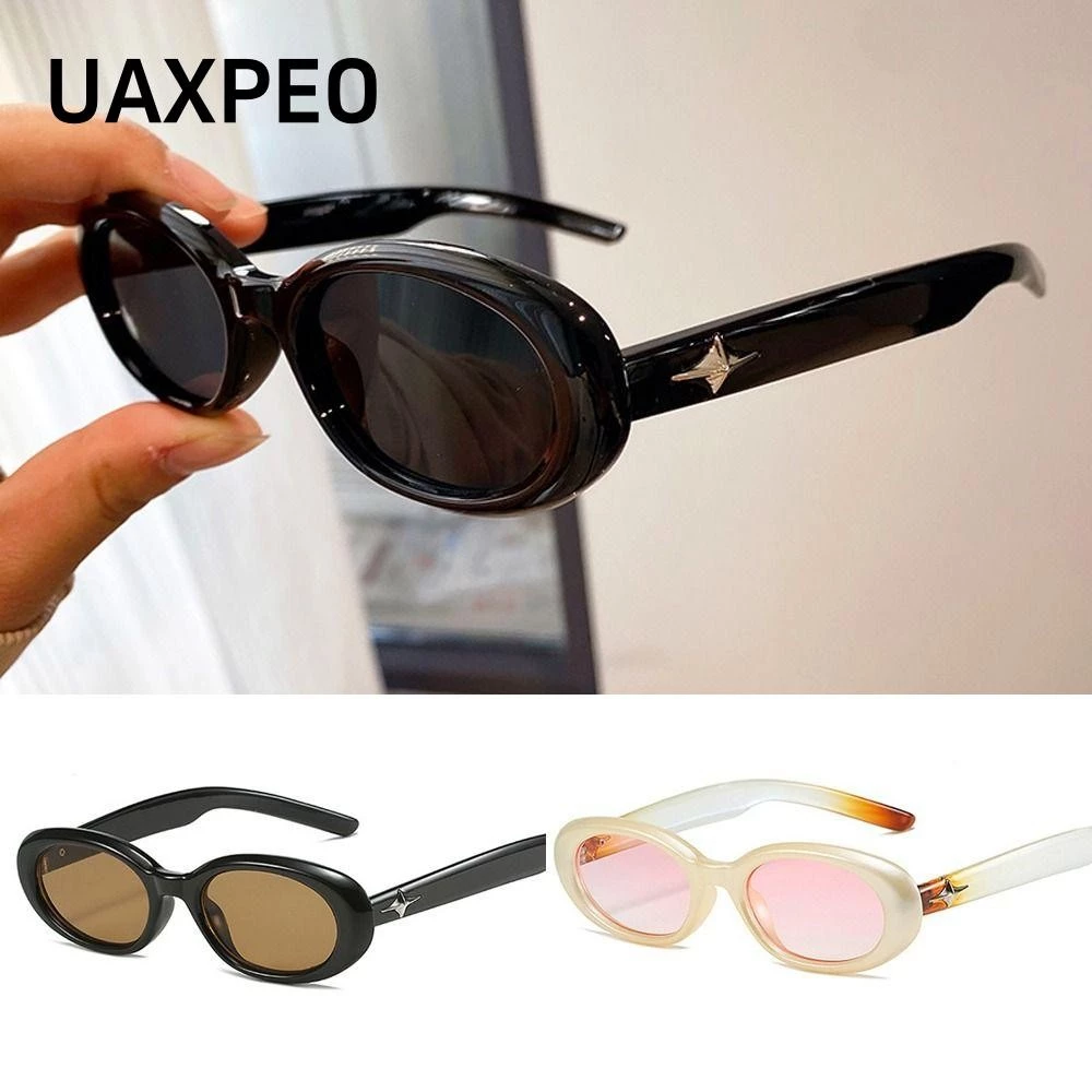 🔥 Kính râm nữ UAXPEO, Trang trí ngôi sao Kính râm Punk Retro, Khung elip chống phản quang cổ điển Phụ kiện du lịch đi biển Màu đen đang giảm giá!